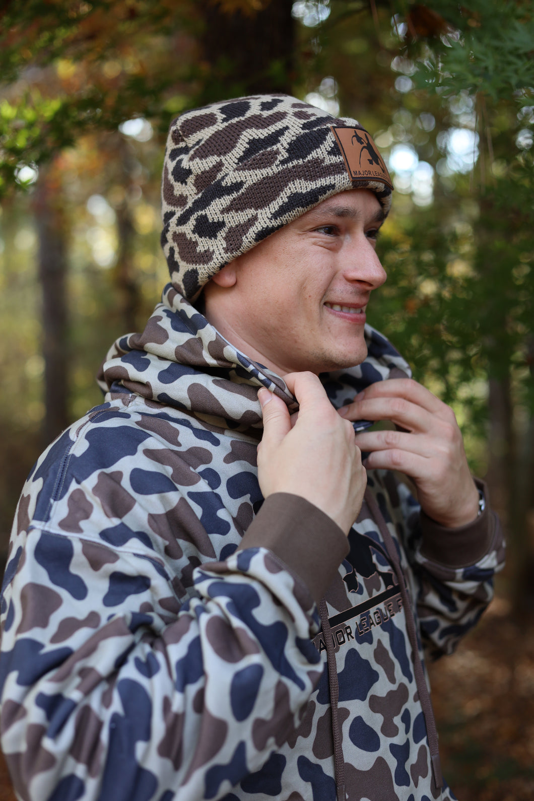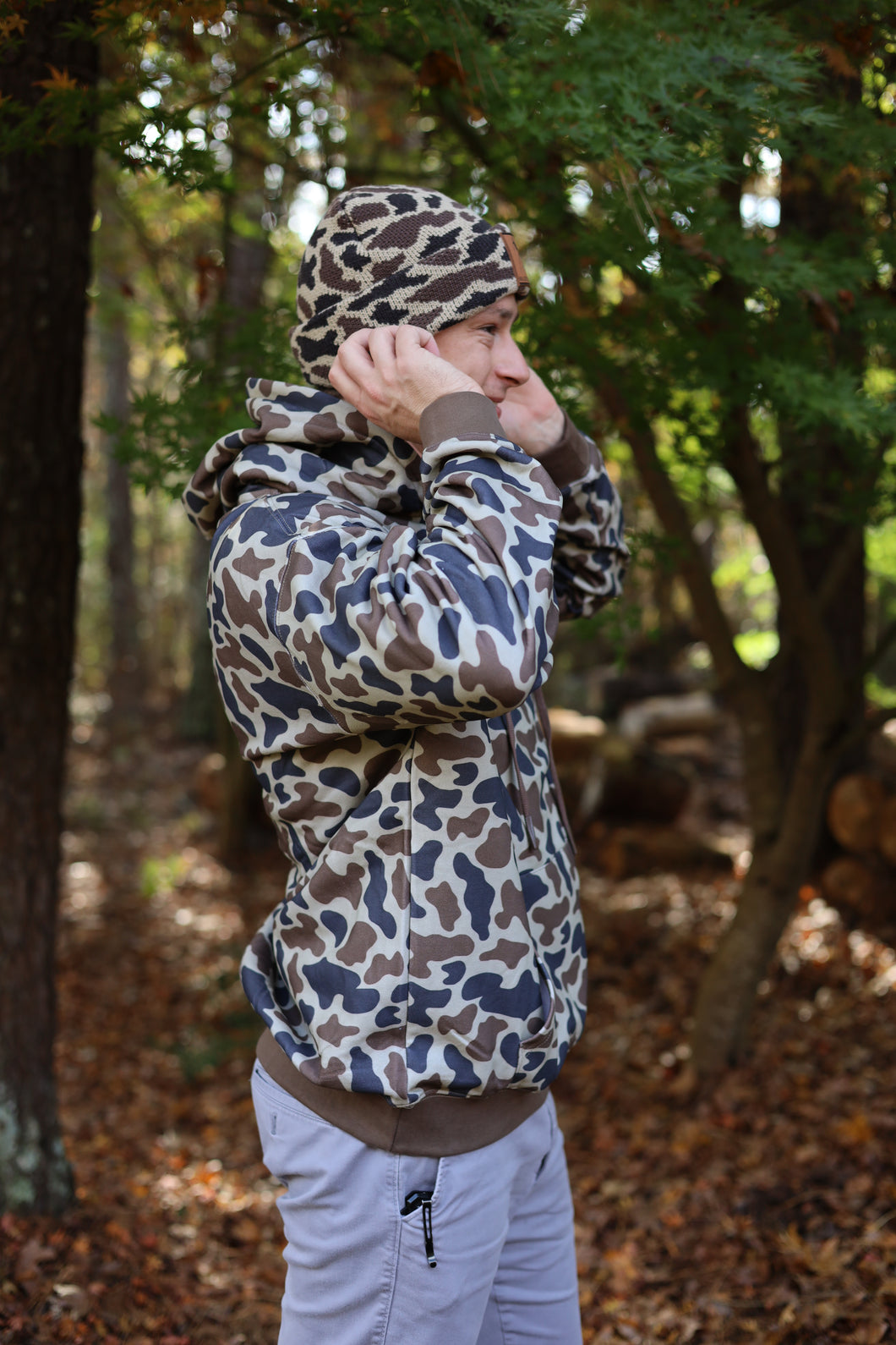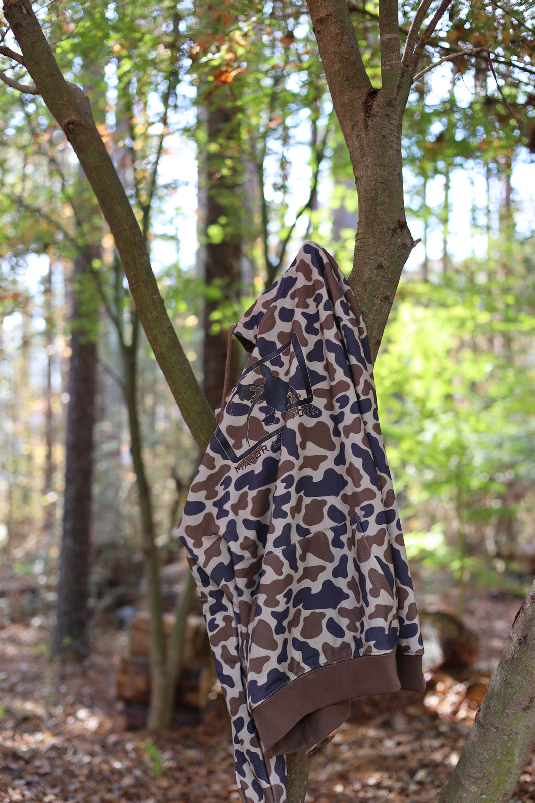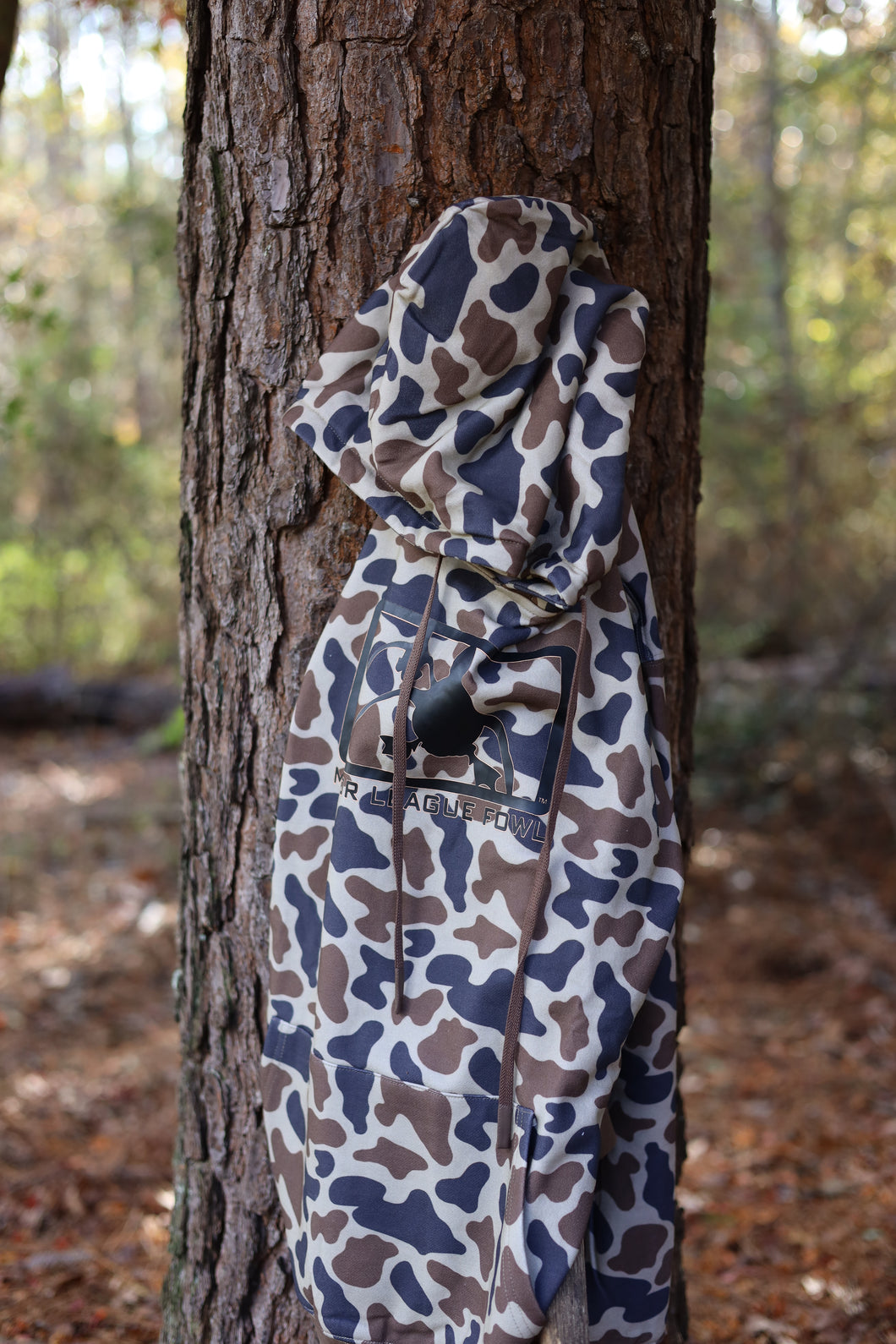 This hoodie was designed and manufactured exclusively by Major League Fowl. It is one of our warmest and most comfortable hoodies. It features our logo on our custom Old School Camo patterned hoodie. It's a great option for outerwear or layering. If you’re in between sizes, we recommend sizing up!